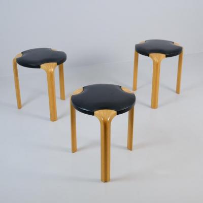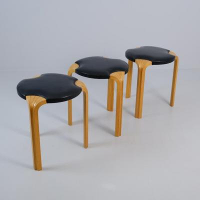 Set of Alvar Aalto Stool X600 in Birch and Original Black Leather, Artek, 1960s