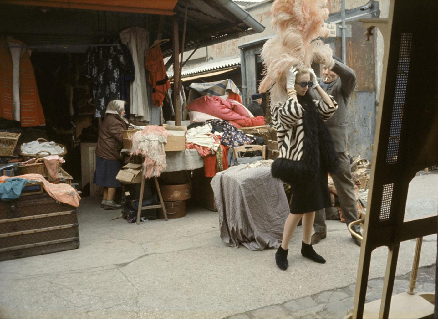 Mark Shaw, Tiger Morse in Zebra Jacket, Feather Headdress 01, 1962