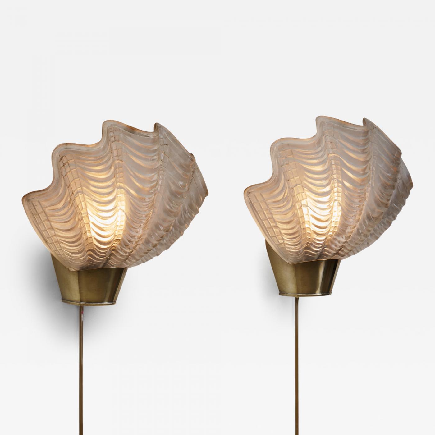 ASEA Skandia "Coquille" Brass and Glass Wall Lamps, Sweden 1940s