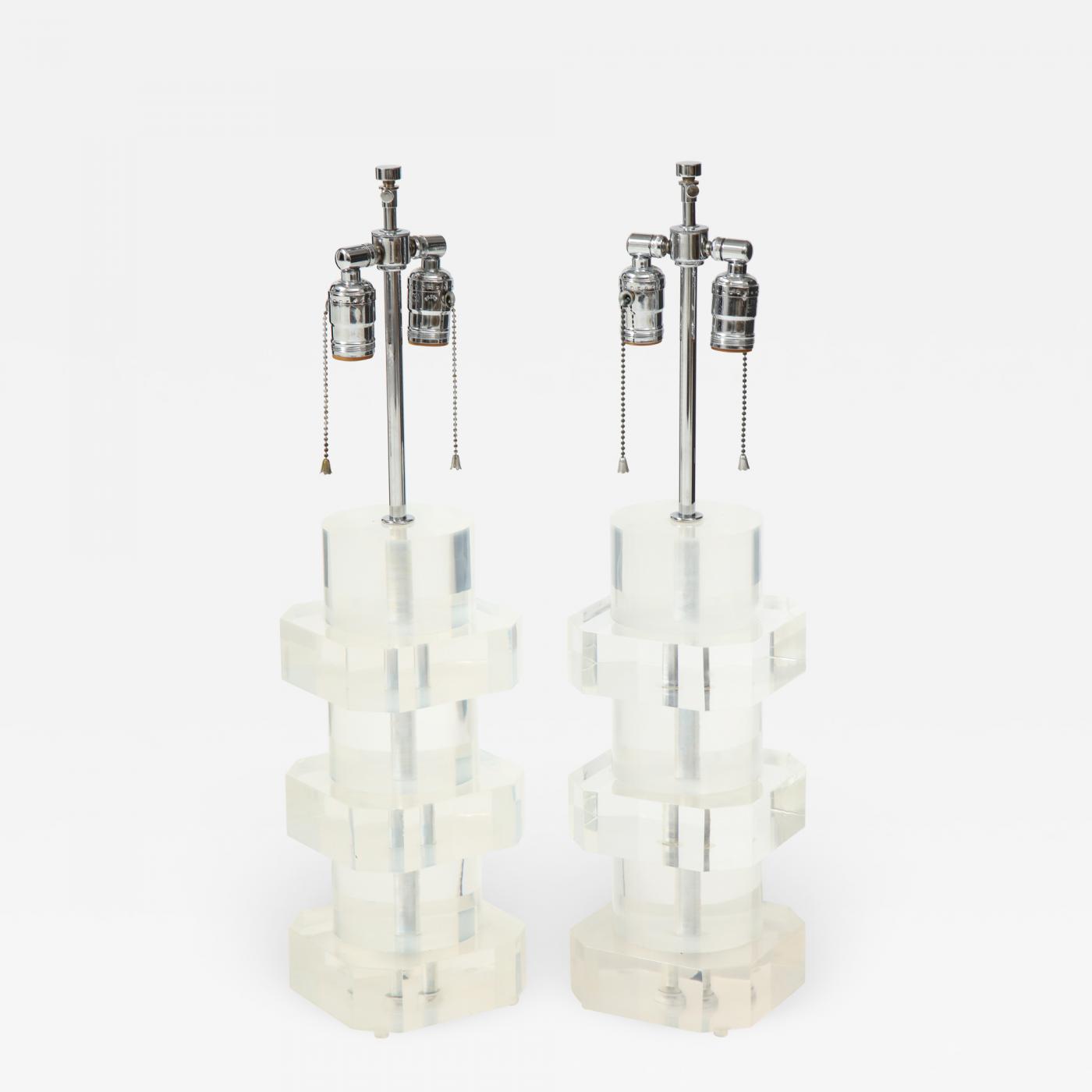 Pair of vintage stacked Lucite table lamps attributed to Karl Springer, c. 1970s.