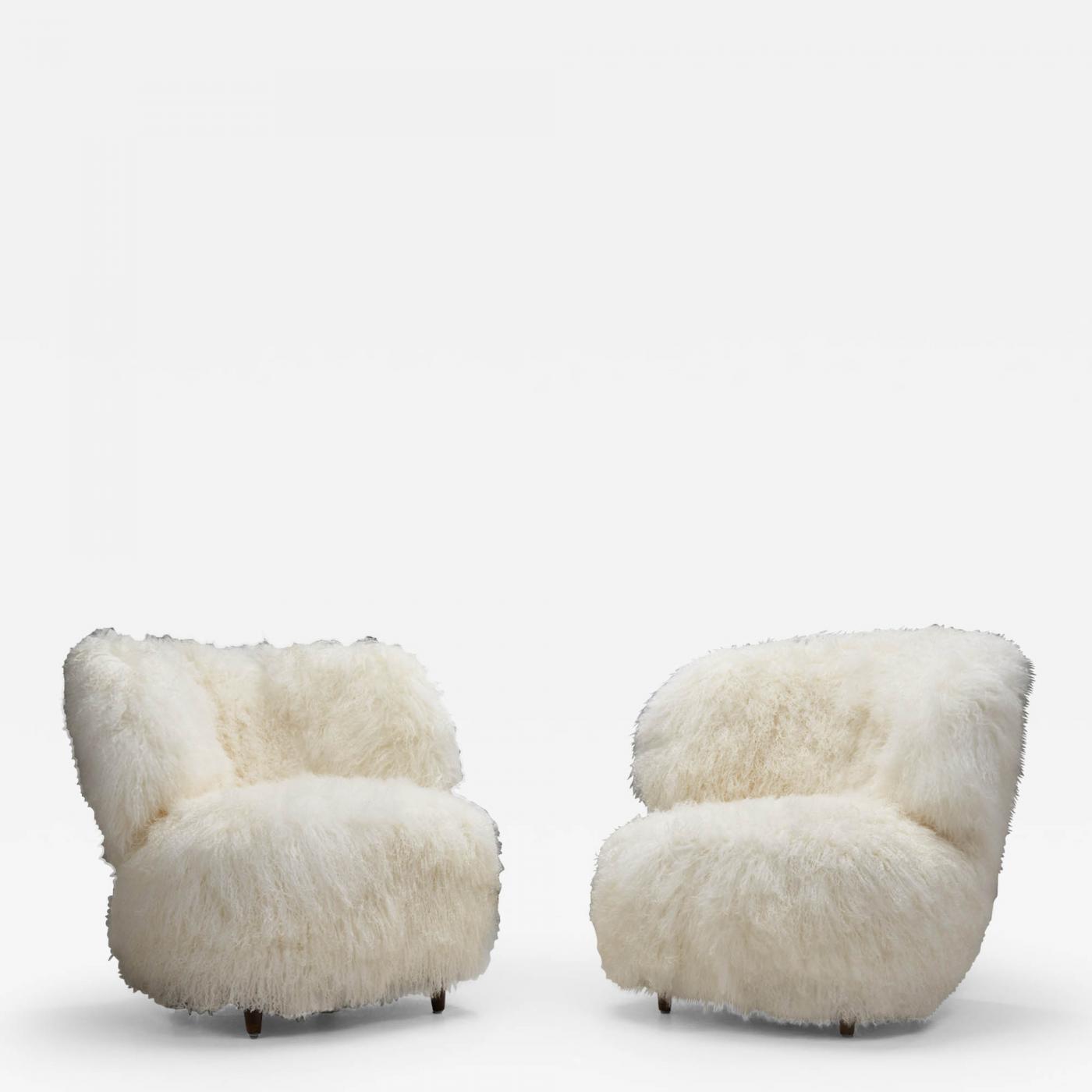Period: 1950-1979 Materials: Mongolian Shearling, Wood Condition: Good. In good vintage condition. Wear consistent with age and use. The chairs have been reupholstered recently in premium Mongolian shearling. Creation Date: 1950s Number of Pieces: 2-3 Styles / Movements: Modern, Mid Century Dealer Reference #: 20231632 Incollect Reference #: 698176 -