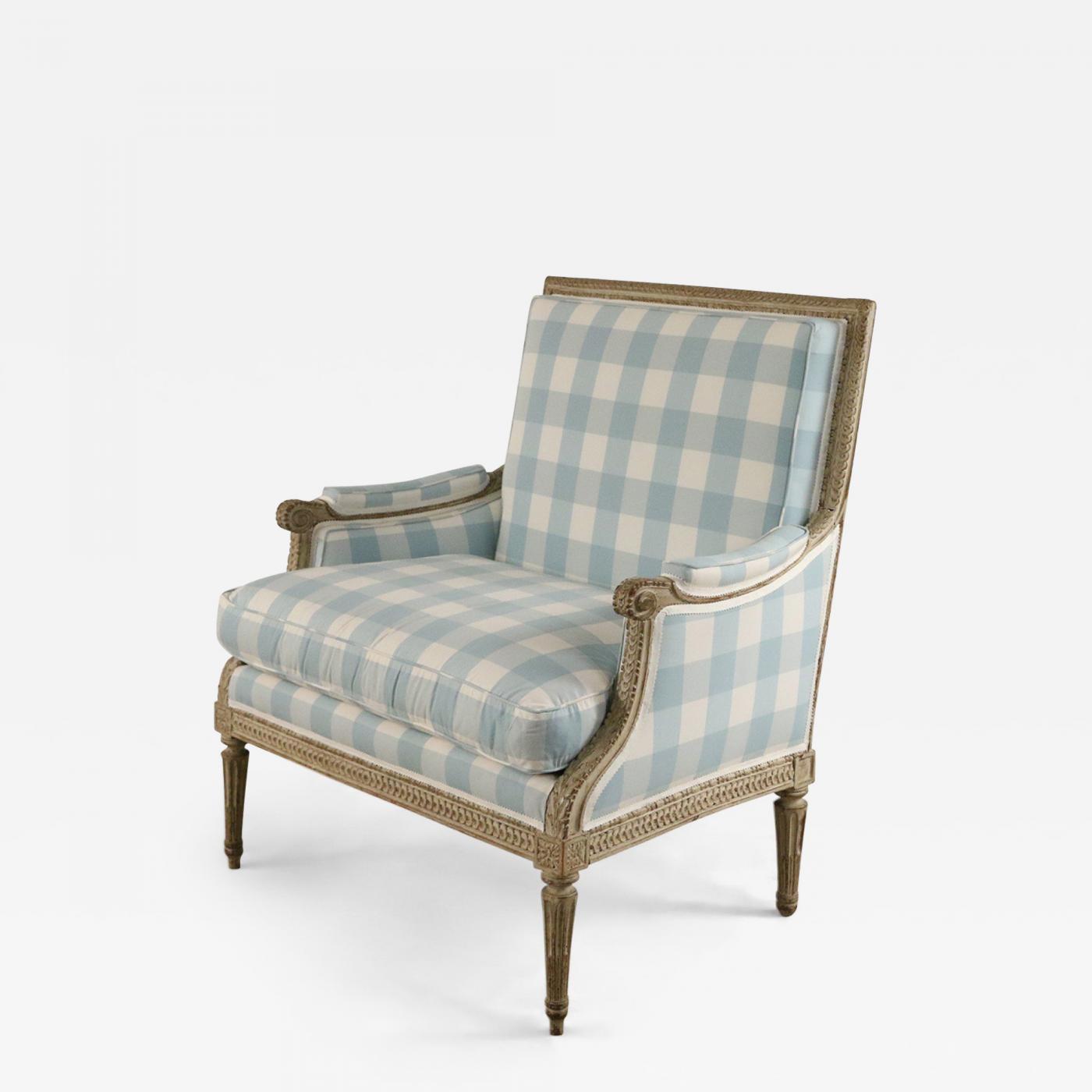 Louis Xvi Blue And White Gingham Upholstered Marquise Armchair