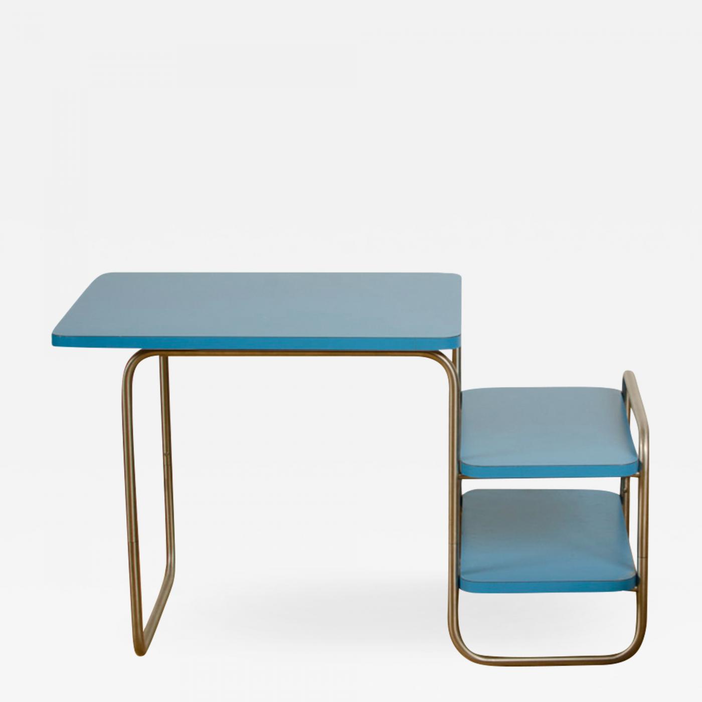 A Marcel Breuer Art Deco kid's desk plus chair set with blue laminate top, 1929