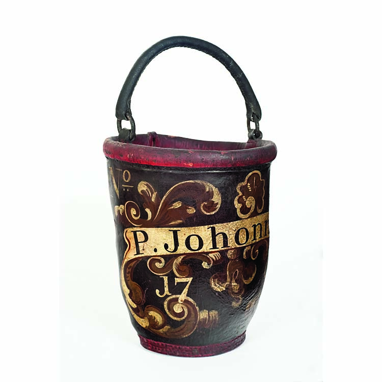 This piece of decorative firefighting equipment is inscribed to “P. Johonnot”, presumably Peter Johonnot (1728–1809) a Boston distiller who married Catherine Dudley (1729–1769) in circa 1750. The son of Zacherie (Zachariah) Johonnot (1700–1784) and Elizabeth Quincy, Peter descended from a family of French Huguenots who arrived in Boston in the 1680s. Zacherie Johonnot was one of the Sons of Liberty and all his children, except Peter, were ardent supporters of the new nation.