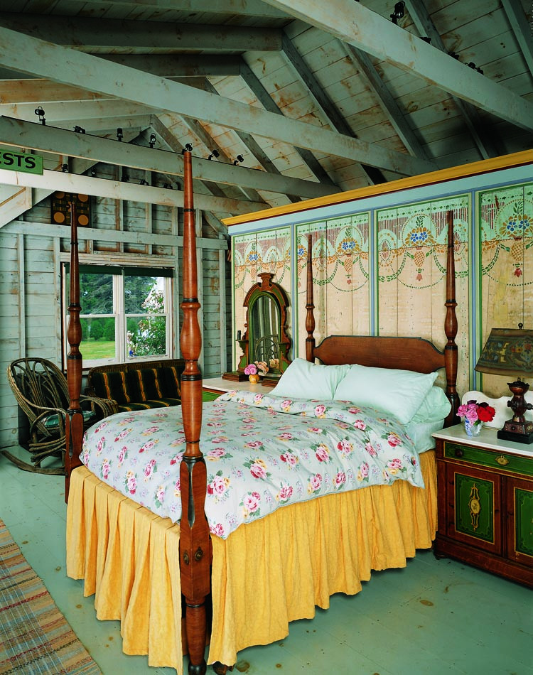 It took the Glazers a year and a half to acquire an adjacent property, home to what was known as the “Filling Station,” a primitive, one-room dentist’s office where patients who traveled by ferry to Bailey Island were treated. Redesigned as a sleeping cottage by Nancy, it now doubles as the Glazers’ private retreat and overflow quarters for family.