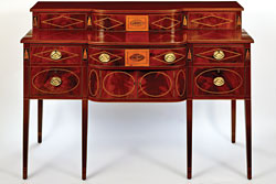Sideboard, Charleston, South Carolina, 1790–1800. Mahogany and mahogany veneer with ash (drawer supports), tulip poplar (drawer bottoms), and white pine. H. 45-1/2, W. 66-3/4, D. 31 in. Courtesy, the Rivers Collection. Photography by Gavin Ashworth.