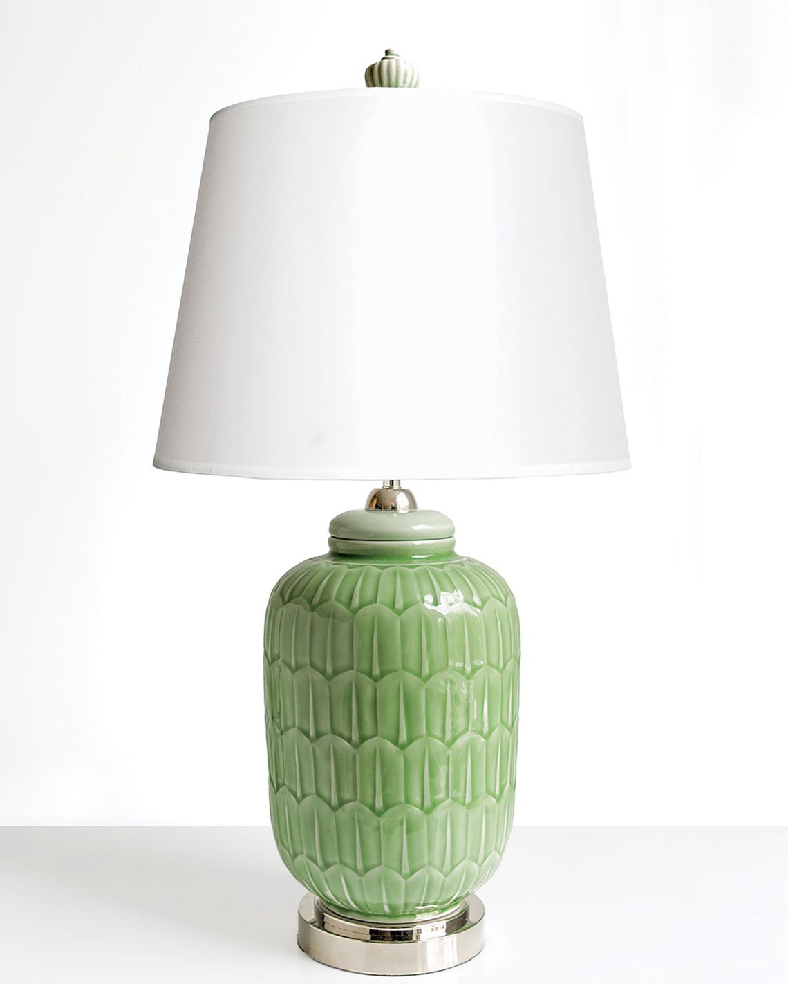 Left: Gunnar Nylund, Swedish Modern lamp with hand thrown ceramic body for Rorstrand Studio, circa 1920-1949. Courtesy B4 Decor. Right: Gunnar Nylund, Swedish Art Deco lamp with jade glaze over a raised surface pattern, Rorstrand, 1940. Courtesy B4 Decor. | ||