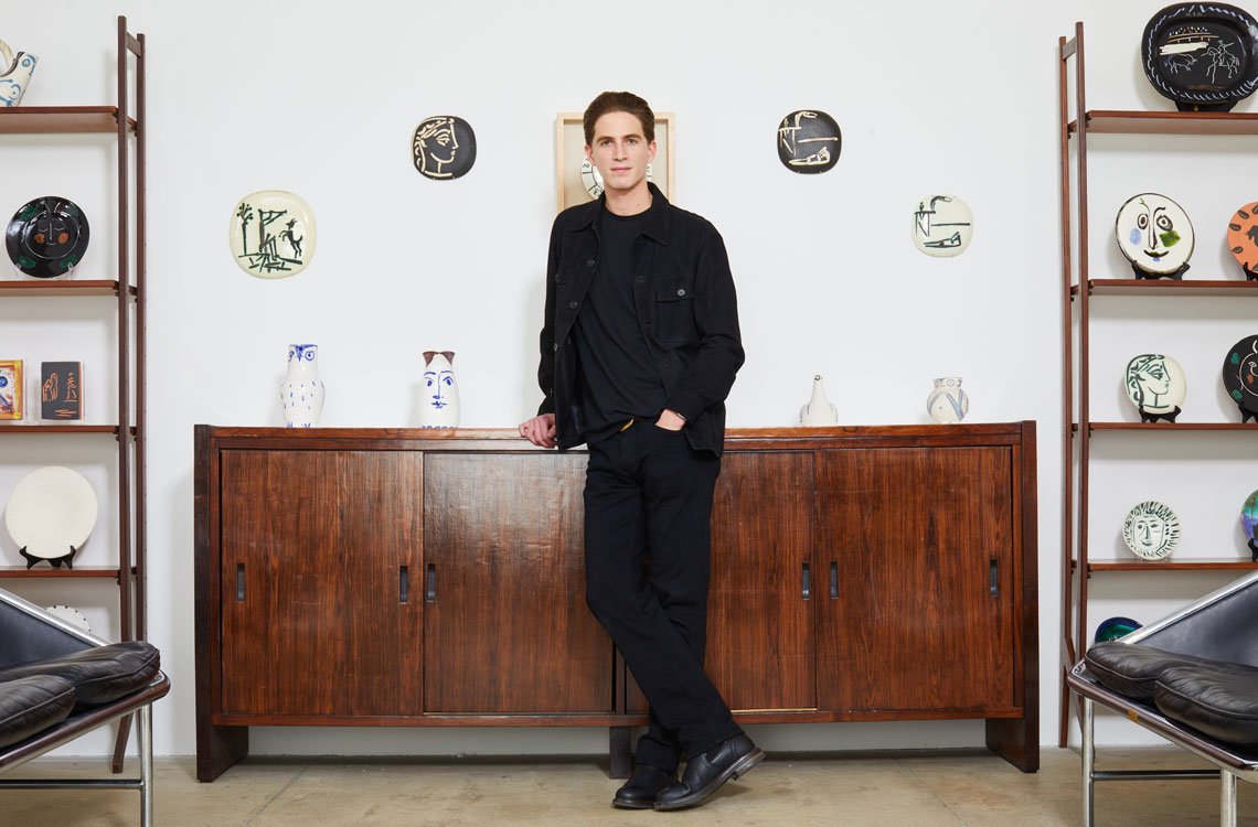 Founder Aaron Katz at Jeans Gallery in the New York Design Center. 23-year-old Katz began buying, selling, and collecting Picasso ceramics as a teenager, following his grandmother’s and parents’ collecting interest in the work. The gallery is named for his late grandmother Jean Katz, an early collector who bought from the Madoura Gallery in the south of France. Photo: Evan Miller |