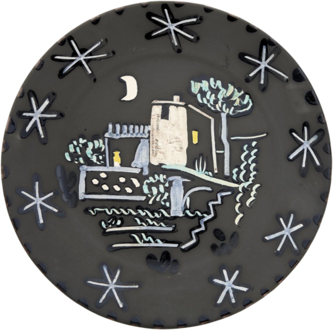 Picasso produced ceramics between 1947 and 1971 in the south of France, where he had lived after leaving Paris at the end of World War II. He created around 4,000 original designs for ceramics, most of which he painted himself at the Madoura Pottery studio in Vallauris, a famous French pottery town. Of these 4,000 original designs, 633 were eventually chosen by the Madoura Pottery Studio team and Picasso to be produced and sold as editions in various sizes. It is estimated that around 120,000 editioned pieces were made at the Madoura Pottery Studio and sold initially as inexpensive souvenirs of the artist’s work to tourists visiting the south of France. “He wasn’t throwing clay pots at the Madoura Studio in Vallauris," Katz explains. “He was there advising and designing the original form and appearance of the ceramics, and then the potters would throw a design in various quantities and paint them.”