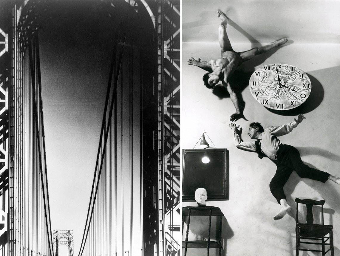 Left: Margaret Bourke White, “The George Washington Bridge,” 1933. Gelatin silver print, 8 x 10 in. Right: Philippe Halsman, “Jean Cocteau & Leo Coleman,” 1949. Based on Cocteau's film. Life Magazine, 1949, printed 1980s. Gelatin silver print, 8 x 10 in. |