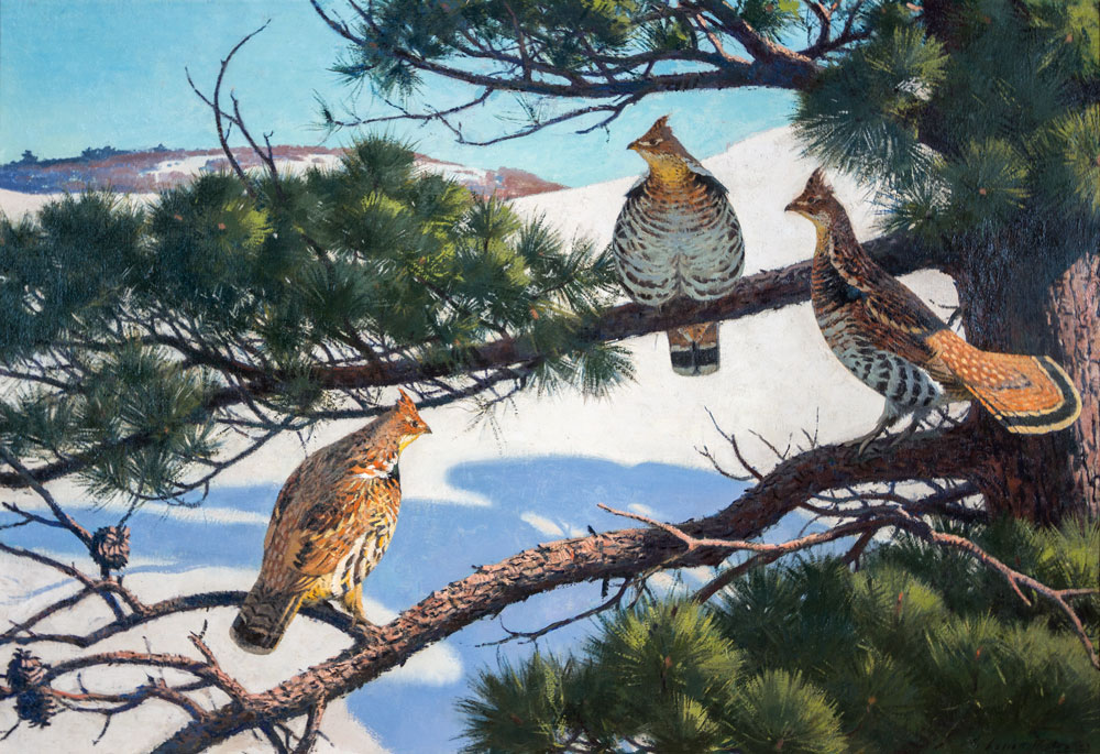 O’Brien’s impressive collection of paintings and prints includes masterworks by Frank W. Benson (1862–1951), Ogden Pleissner (1905–1983), Aiden Lassell Ripley (1896–1969), Roland Clark (1874–1957), and A.F. Tait (1819–1905). The collection also houses some of the finest J.J. Audubon (1785–1851) engravings, including the Virginian Partridge and Canvas-backed Duck, among others.