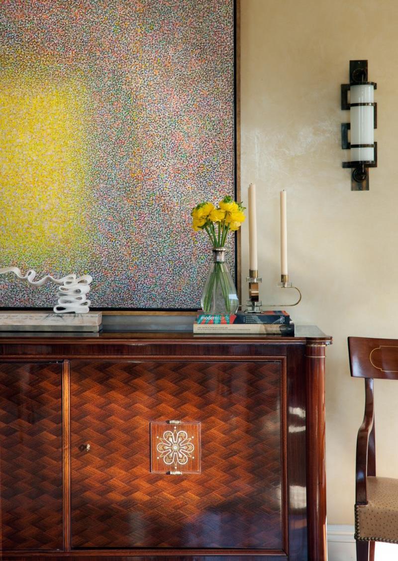 This chic high rise by Cullman & Kravis features a divine mix of fine art, antiques, and decorative accessories. A neutral palette throughout the home provides a quiet backdrop for bold, abstract canvases and sculptures as well as modern landscapes and works on paper. Luxe finishes, including rich woods, lustrous metals, and plush upholstery add to the home’s inviting atmosphere. Click here to view the full project.
