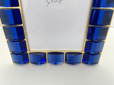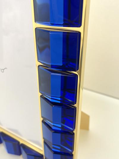 Contemporary Picture Frame Handmade Blue Crystal and 24Kt Gold plated Brass