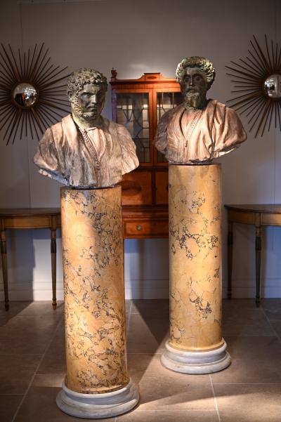 Fine Matched Pair of 19th Century Italian Scagliola Siena Marble Columns