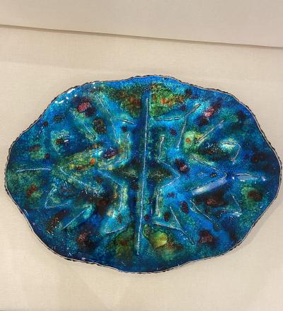 Emilia Castillo Extra Large Sterling Silver & Porcelain Platter, Signed, Mexico