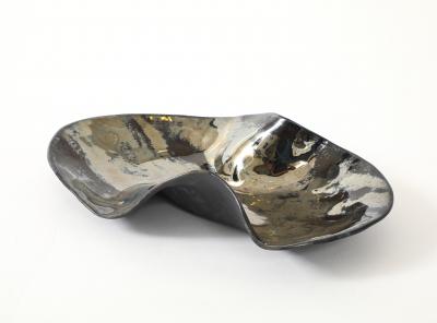 Pair of Ceramic Wave Platters in Platinum by Aram Chenensky