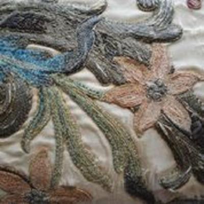 French Early 19th Century Silk and Angora Aubusson Tapestry Pillow with Flowers