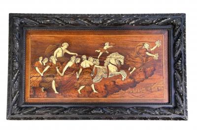 Marquetry Inlaid Scenic Tarsia Panel of Raffigurante "Il Carro Dell'Aurora"