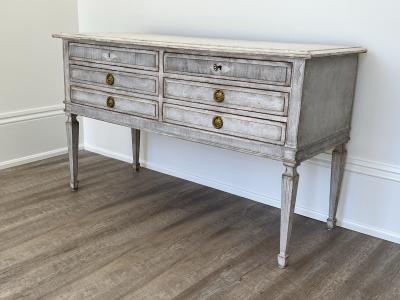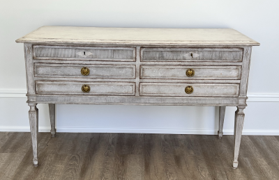 Swedish Baroque, 1740s Painted Buffet with Carved Doors and Pullout Drawer