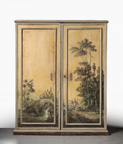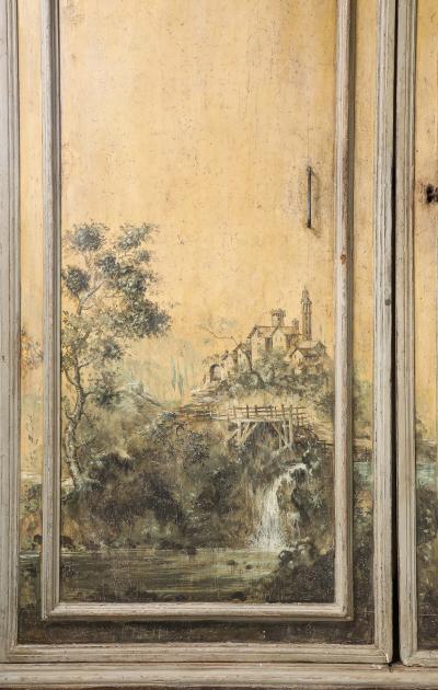17th C. Painted Cabinet with Chalk, Graphite Panel Drawings, Turin, Italy
