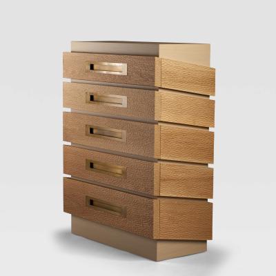 CHANEAU TALL CHEST SHOWN IN NATURAL HAND CARVED OAK