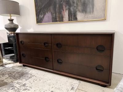 Broyhill Brasilia Mid Century Walnut and Brass Lowboy Dresser