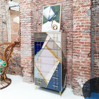 Cabinet "Labyrinthe" in Bleu and Grey Tinted Charm