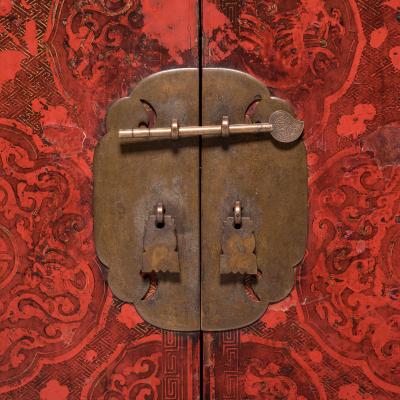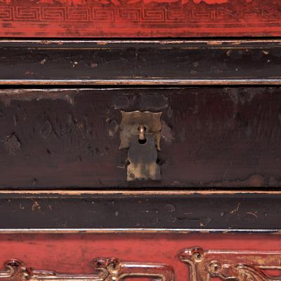 Asian 4 Drawer Chest of Drawers Night Stands, Nickel Plated Hardware, Pair