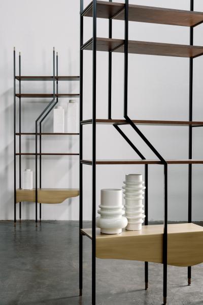 Mi-Century Modern Lage Bookcase Set/2, Brass Oak Root, Handmade by Greenapple