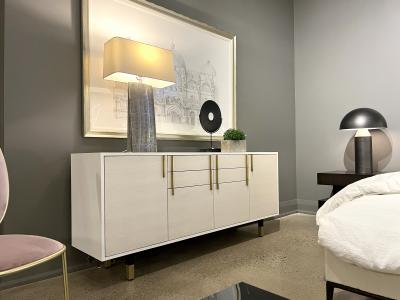 Custom Modern White Lacquered Sideboard Buffet with Glass Features