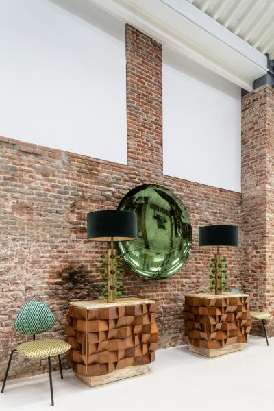 New Black and Blue Table Lamp in Wood Marquetry by Aymeric Lefort