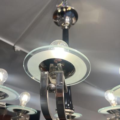 FRENCH ART DECO GLASS/ NICKELED BRONZE BIRD CHANDELIER BY ATELIER PETITOT