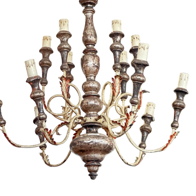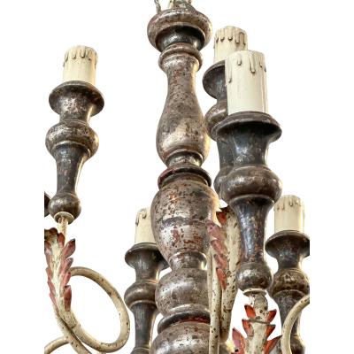 Pair of 19th Century 12 Lite Tuscan Silverleaf Chandeliers