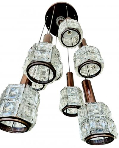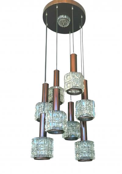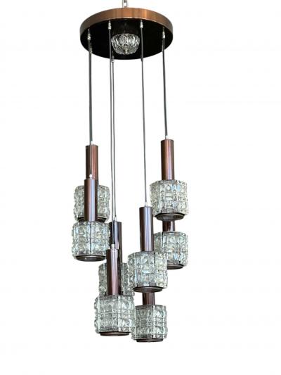 Rare Mid-Century Hand-Blown Smoked & Rose Murano Glass 2-Tier Pendant Chandelier