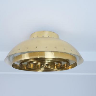 Paavo Tynell Ceiling Lamp "Cannon Shell" Model 9040, Brass Flowers, Idman 1950s