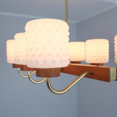 Mid-Century Modern Ceiling Pendant in Brass, Glass and Teak, Aris Finland 1960s