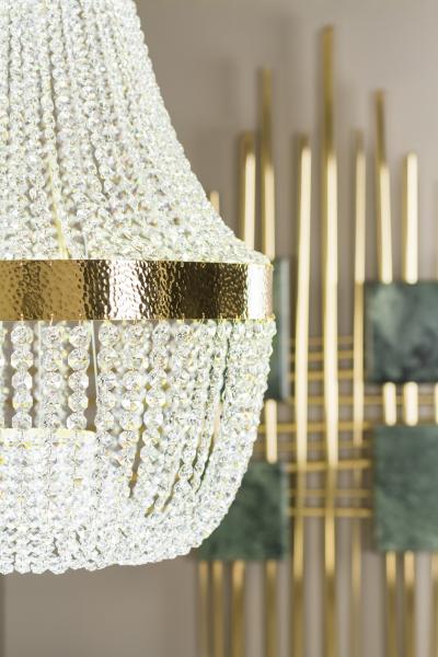 Art Deco Crown Chandelier Clear Crystal Brass Handmade in Portugal by Greenapple