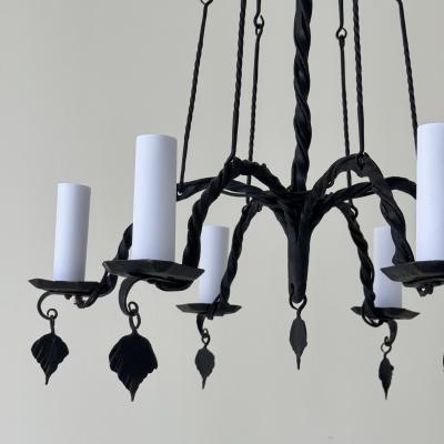 Modernist Polished Nickel Six Arm Chandelier w/ Chain & Spherical Detailing
