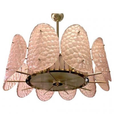 Bespoke Italian Crystal Rose Pink Murano Glass Brass Chandelier / Flushmount