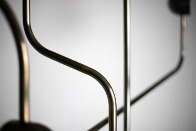 Floor Lamp Sculpture Gold Mirror Steel Black Linen Lampshade Collectible Design