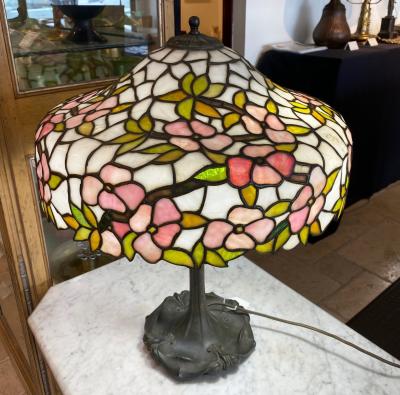 Original Chicago Mosaic Pink Apple Blossom Leaded Lamp, Circa 1910