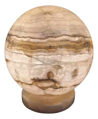 Ambient Brown Onyx Table Lamp with Leather-Backed Stainless Steel Base