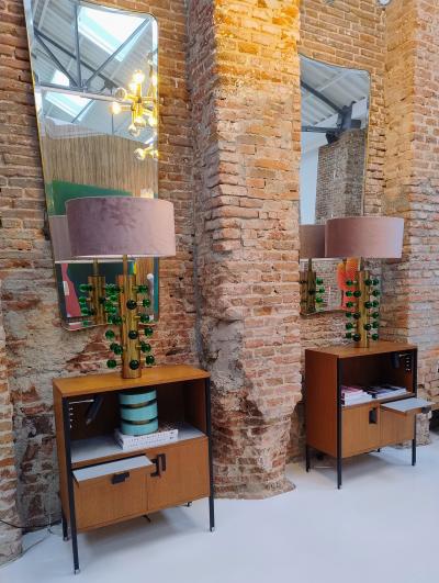 Contemporary Pair of Lamps Cubic Pennellate Murano Glass and Brass, Italy