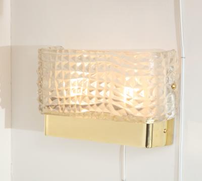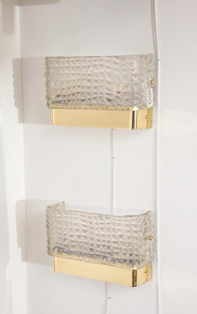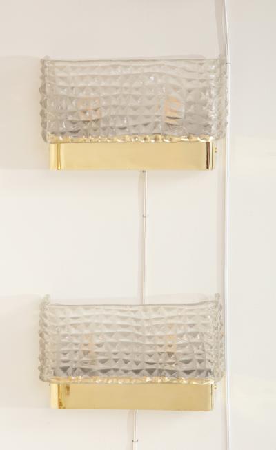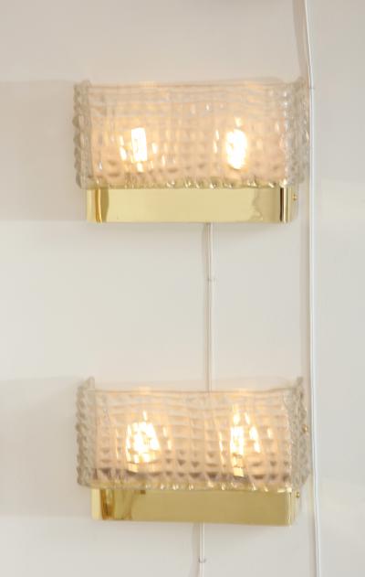 Pair of Translucent Textured Murano Glass and Brass Sconces, Italy 2022