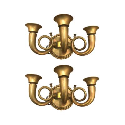Pair of Vintage Gilt Iron Wheat Sheaf Wall Sconces