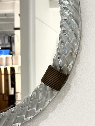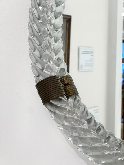 Cristal Arte Oval shaped Italian brass green crystal mirror 1950s