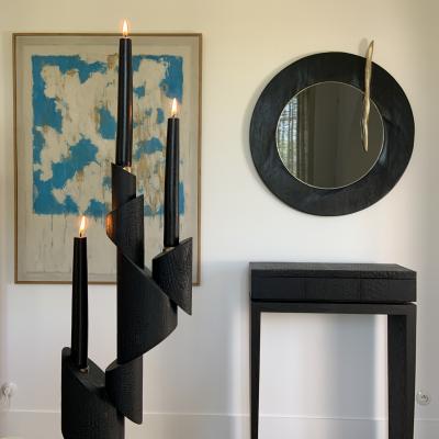 Italian Brutalist Perforated Black Lacquer & Gold Brass Modern Round Mirror