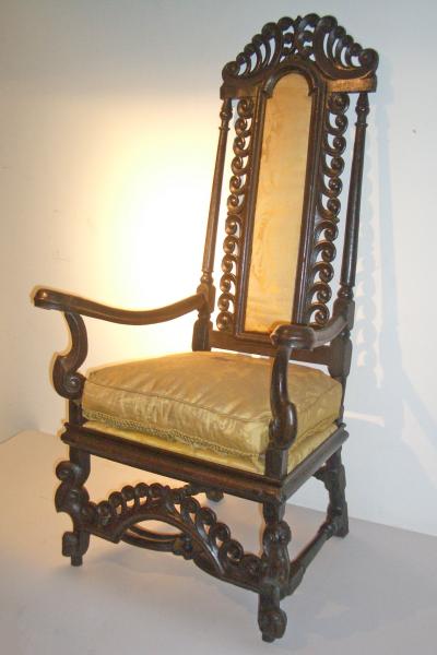 Baroque Swedish Armchair, Hand-Carved from Beechwood and Ash