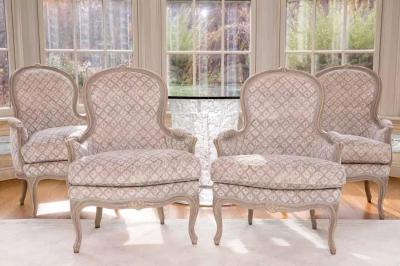 Pair of French Louis XV Style Bergères À Oreilles with Carved Floral Décor