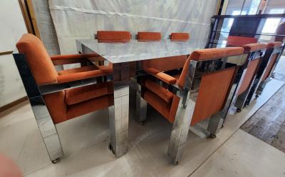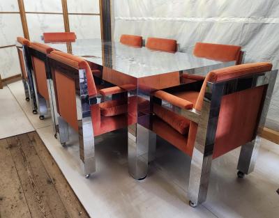 Eight Paul Evans Studio Chrome Dining Armchairs 1973